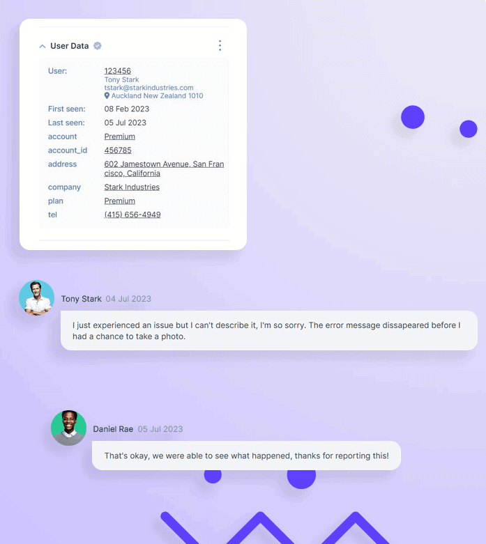 Userback’s session replays give you the backstory behind every issue and feature request by automatically record user events, to get a deeper understanding of both site performance and user behavior.