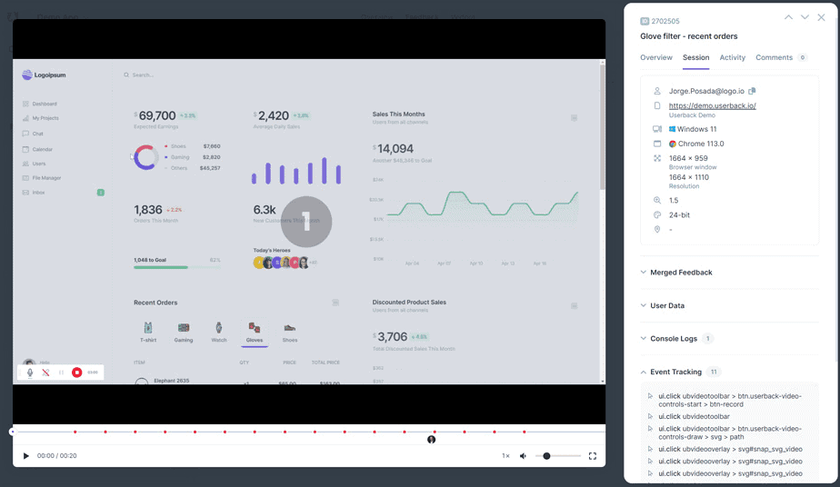 02. Session replays: watch a recording of the user experience