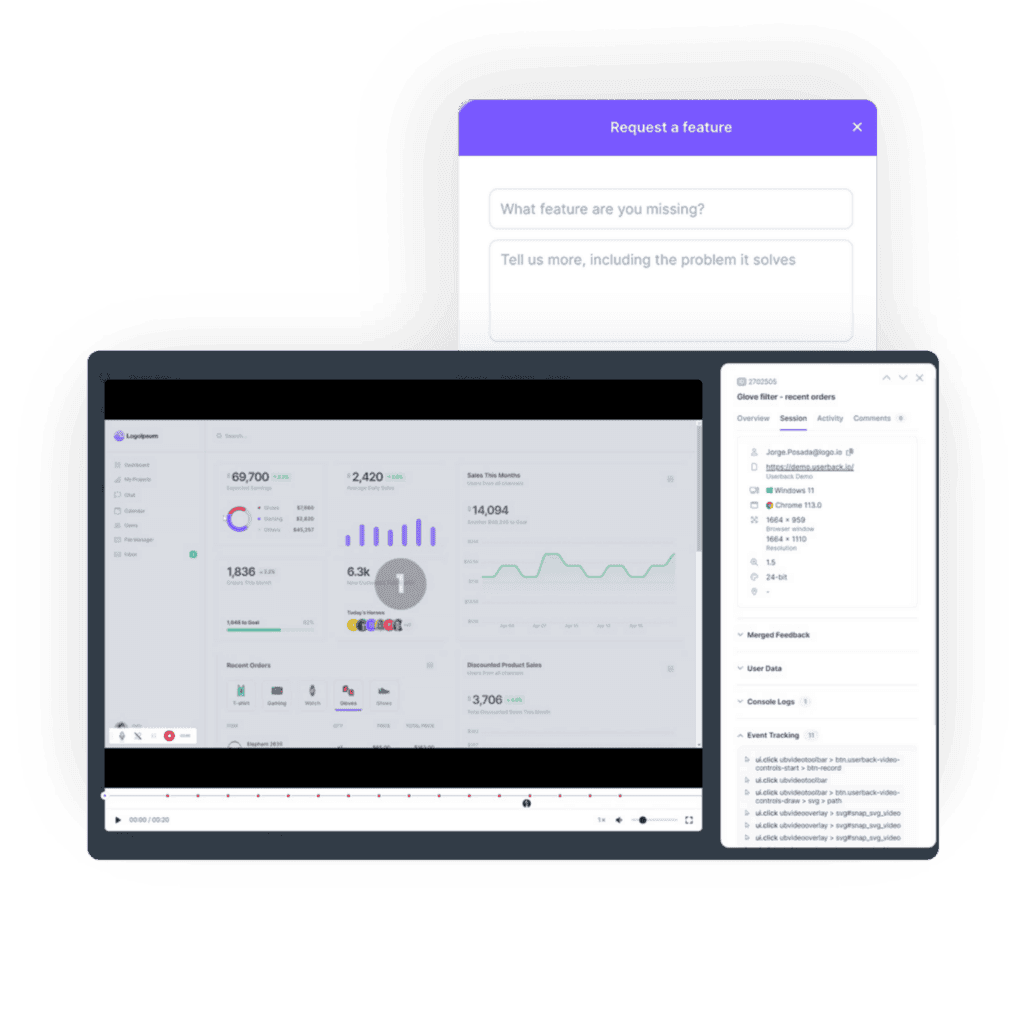 Bug tracking and reporting: Userback simplifies bug tracking and reporting by allowing users to highlight and comment on specific areas of concern, plus automatically includes a session replay with their feedback, making it easier to analyze feedback and resolve issues faster.