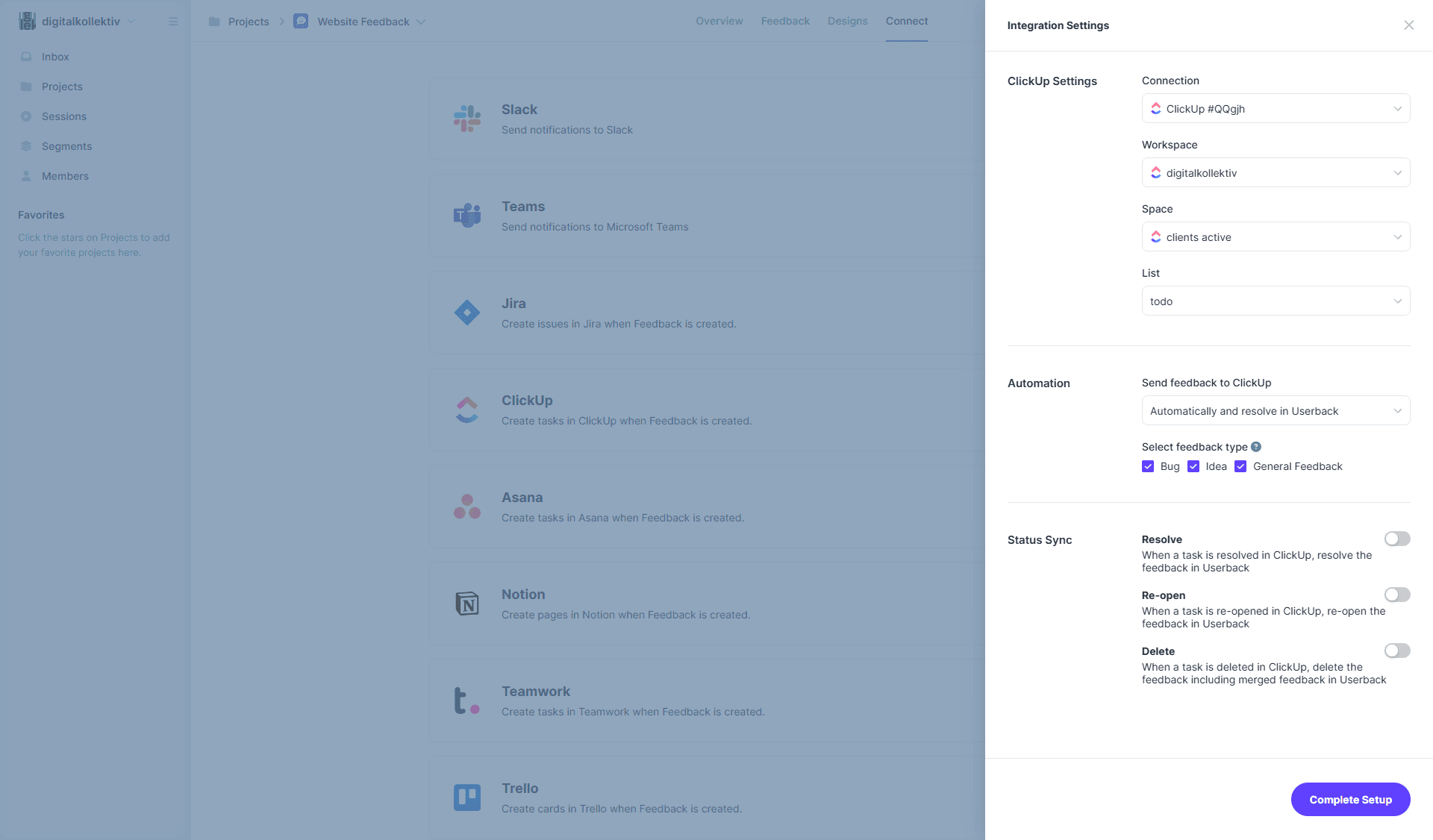 Whether you’re just checking out Userback for the first time or incorporating user feedback into your workflows for real, integrating with ClickUp is super simple!