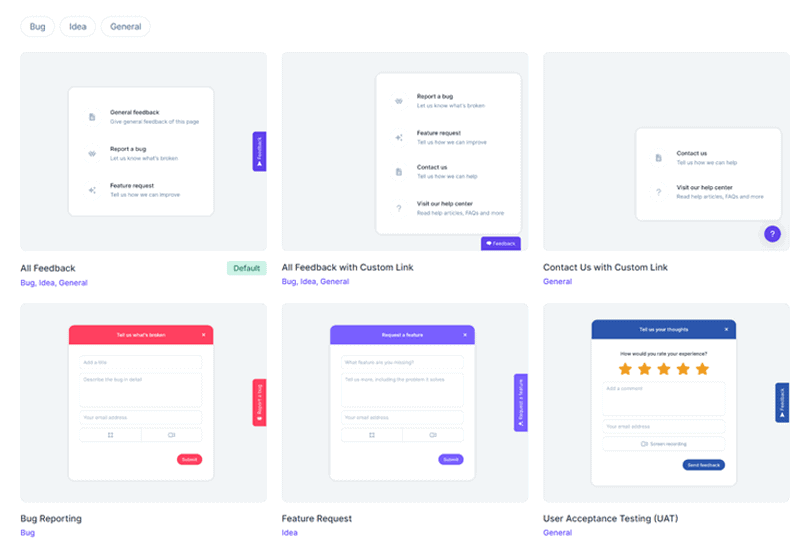Ensure that the platform allows you to fine tune your feedback workflow and tailor the feedback collection forms, surveys and feedback boards to fit your specific needs. This enables you to gather feedback that is relevant and actionable for your product or service. Userback’s Feedback Templates allow you to create and customize feedback collection touchpoints in an instant.