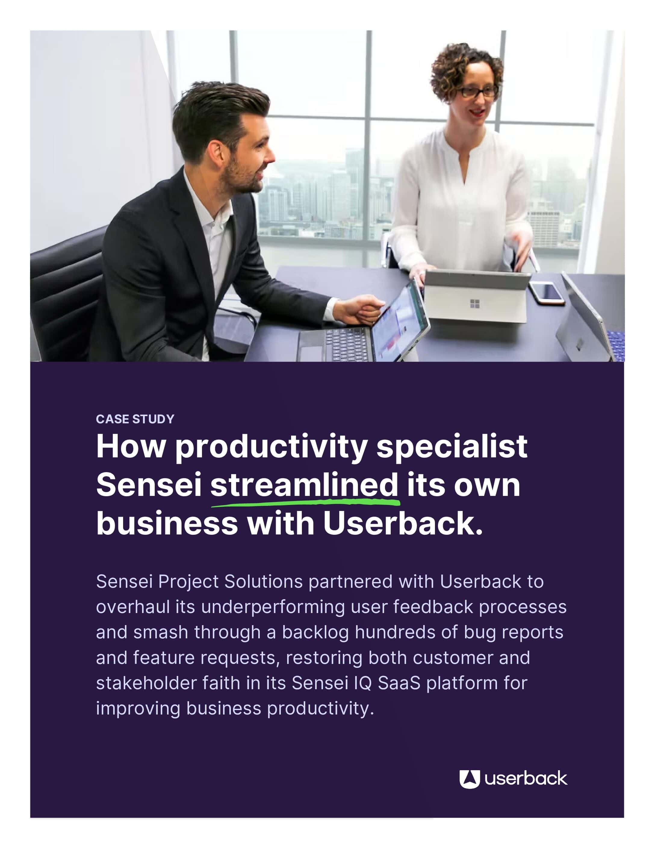 Sensei Project Solutions partnered with Userback to overhaul its underperforming user feedback processes and smash through a backlog hundreds of bug reports and feature requests, restoring both customer and stakeholder faith in its Sensei IQ SaaS platform for improving business productivity.